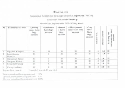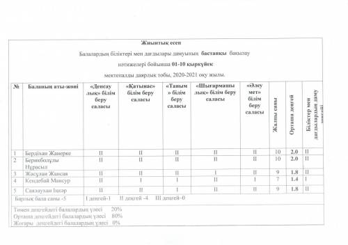 2020-2021ж.Даярлық тобы қазақ сыныбы Мониторинг
