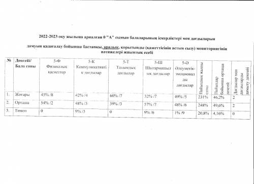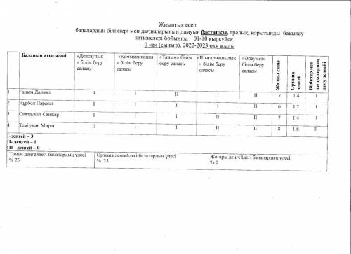 2022-2023ж. Даярлық тобы қазақ сыныбы Мониторинг