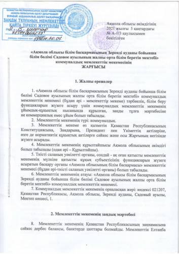 «Ақмола облысы білім басқармасының Зеренді ауданы бойынша білім бөлімі Садовое ауылының жалпы орта білім беретін мектебі» коммуналдық мемлекеттік мекемесі