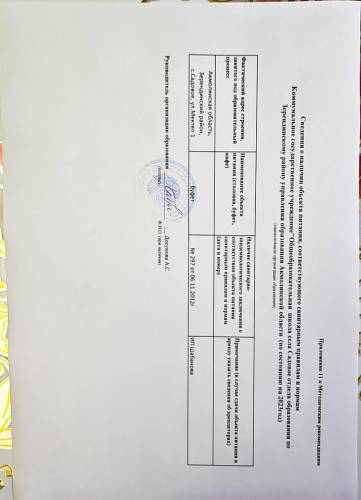 Тамақтану объектісінің болуы туралы мәліметтер. Қосымша 11