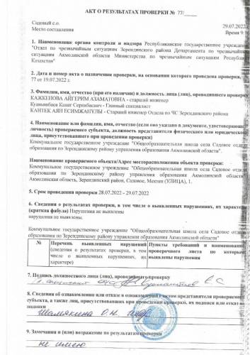 Акт о результатах проверки пожарной безопасности