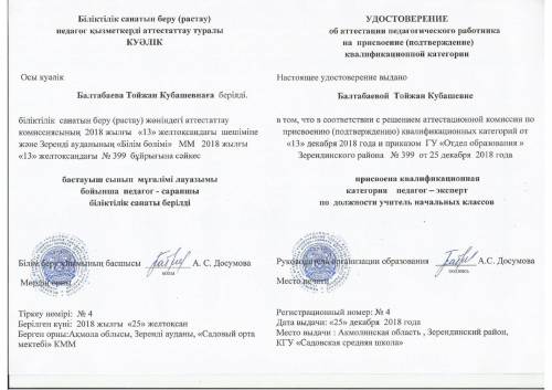 Балтабаева Тойжан Кубашевна