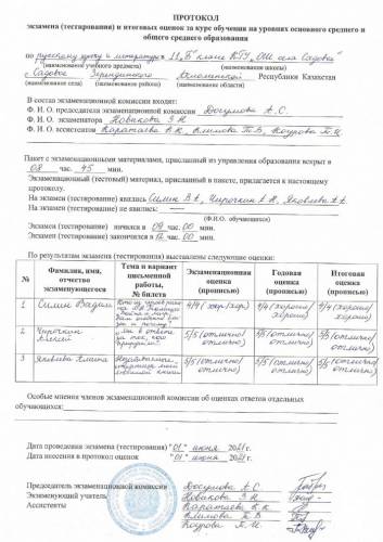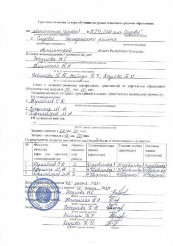 Протоколы экзаменов 2020-2021 учебный год