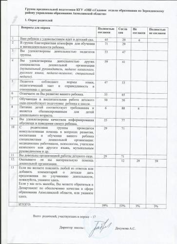 Результаты опроса родителей воспитанников и воспитателей предшкольных классов.