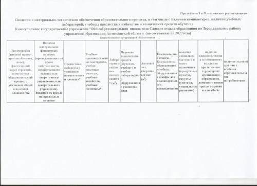 Сведения о материально — техническом обеспечении образовательного процесса. Приложение 9.