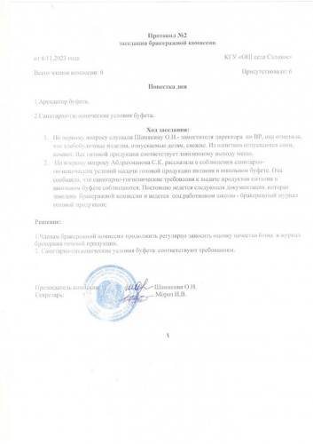 № 2 бракераж комиссиясының отырыстары