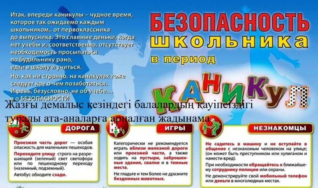 Жазғы демалыс кезіндегі балалардың қауіпсіздігі туралы ата-аналарға арналған жадынама