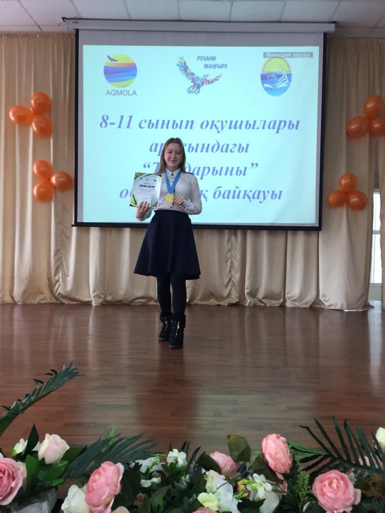 Аудандық "Тіл дарыны" байқауында Мороз Алина жүлделі 1 орын алып аудандық байқауға жолдама алды,
